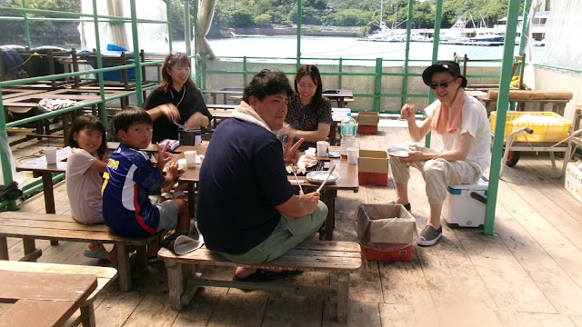 釣ったばかりのマダイやイサキの塩焼きや自分たちで食材を持ち込んで頂いたりして